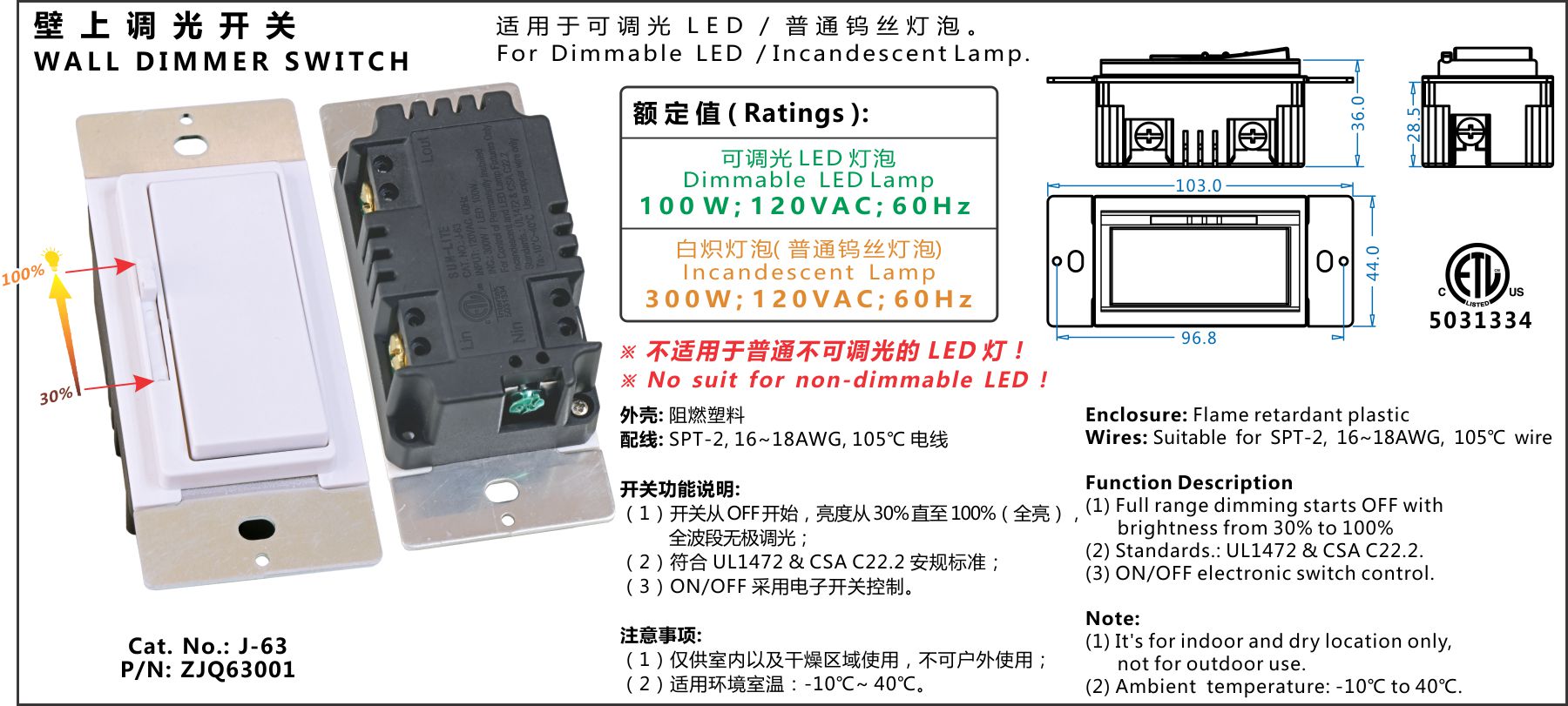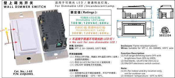 (1) Full range dimming starts OFF withbrightness from 30% to 100%